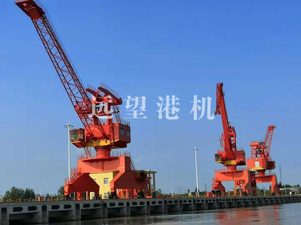 单臂架门座式起重机单臂架门座式起重机,为港口装卸散货及件杂货的全回转门座起重机,用于码头前沿。适用于岸线较长的码头,如船厂的船台、舾装码头和万吨级泊位散杂货码头等。一般采用单臂架钢丝绳变幅、单臂架齿条变幅或四连杆臂架齿条变幅结构形式,配用吊钩或抓斗装卸货物。其结构具有足够的强度、刚度、稳定性和抗疲劳性。各机构布局合理,传动平稳,操作灵活,维修方便,能适应吊钩和抓斗的作业要求。在规定幅度范围内,起吊额定载荷可作水平变幅和360度回转。起升、变幅、回转、行走机构可单独动作,也可联合动作。整机可沿水平铺设的轨道直线运行。该类产品具有工作幅度大、起升高度高、速度快、运转平稳可靠、作业效率高等特点。